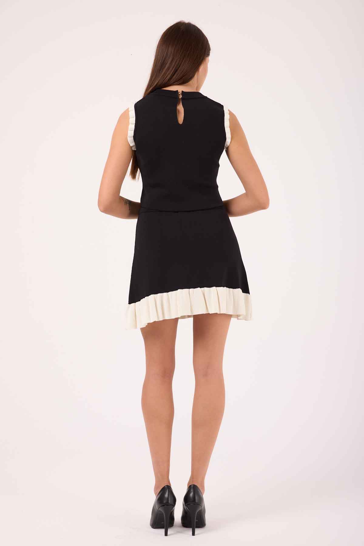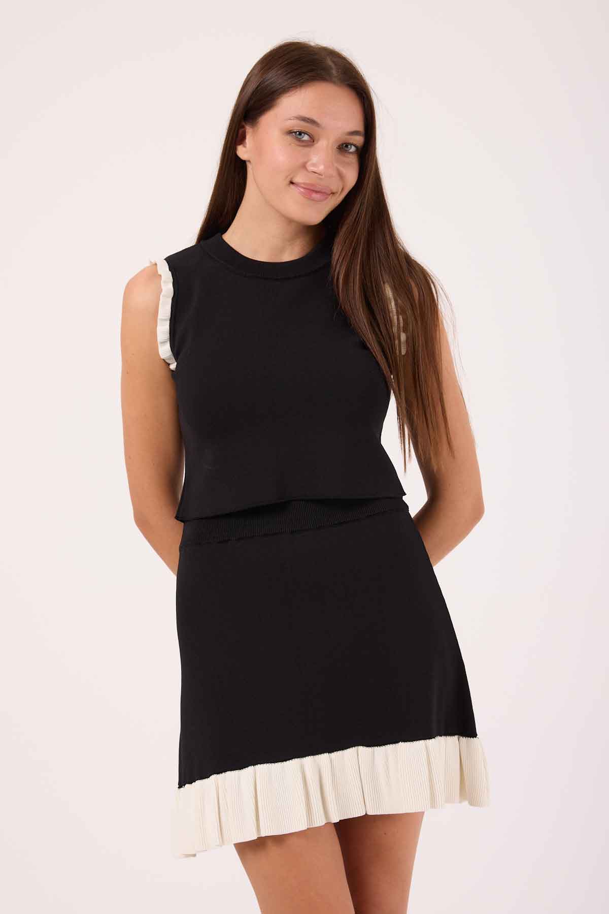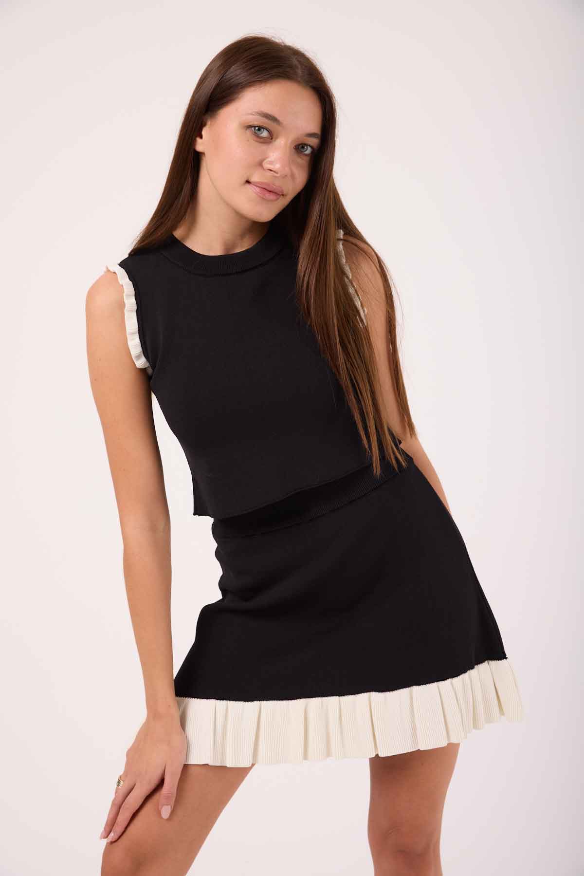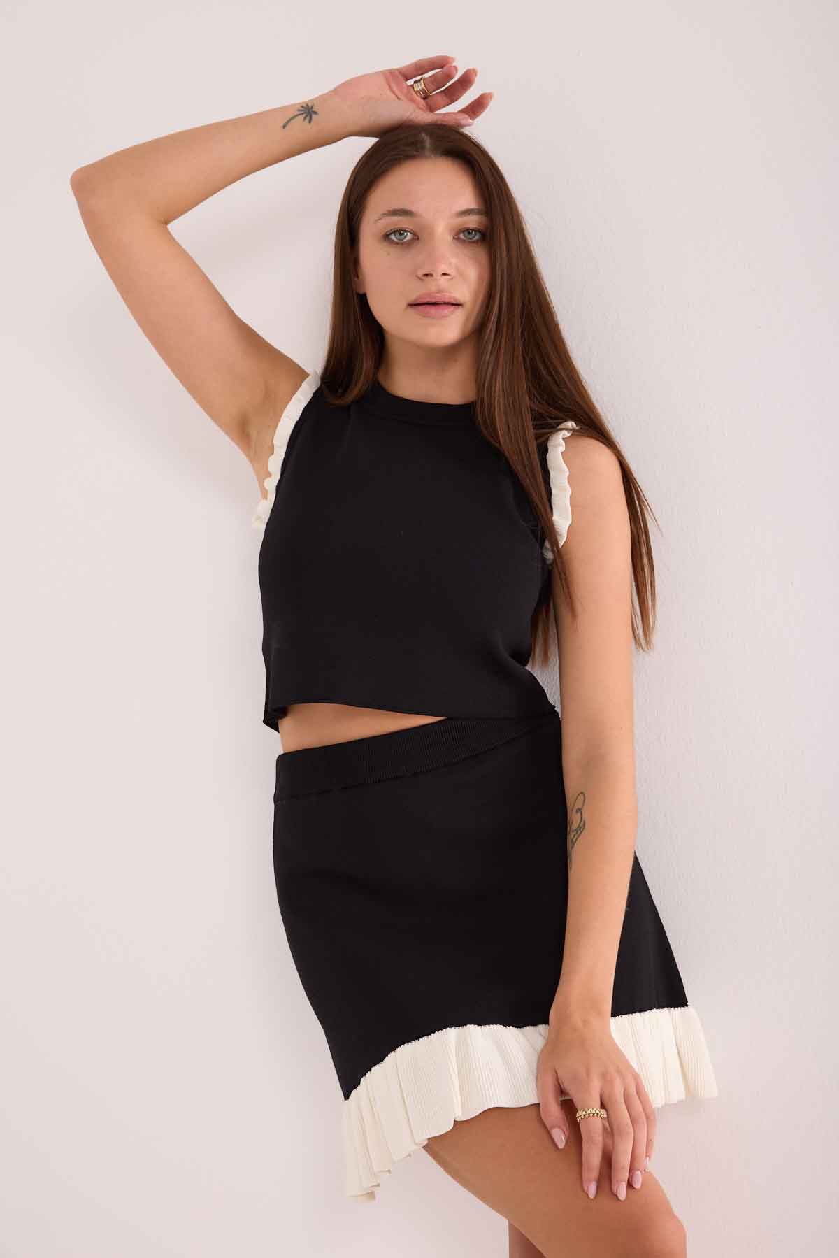 Triko Rayon İplik Fırfırlı Crop Üst ve Etek Takım