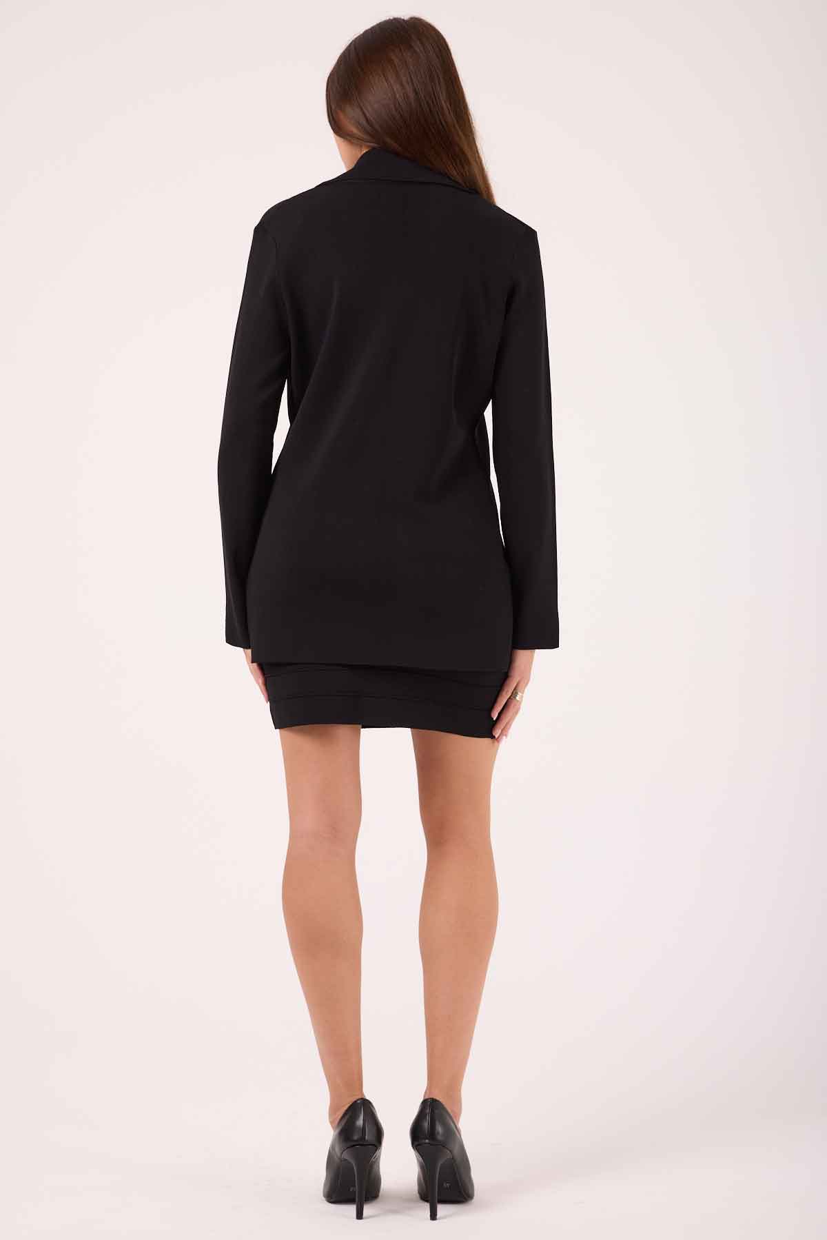 Kod 26515 ile sunulan bu ceket, klasik blazer tasarımını triko ipliğin esnekliği ve yumuşaklığı ile birleştirerek tüm gün giyilebilir lüks bir parça sunar.