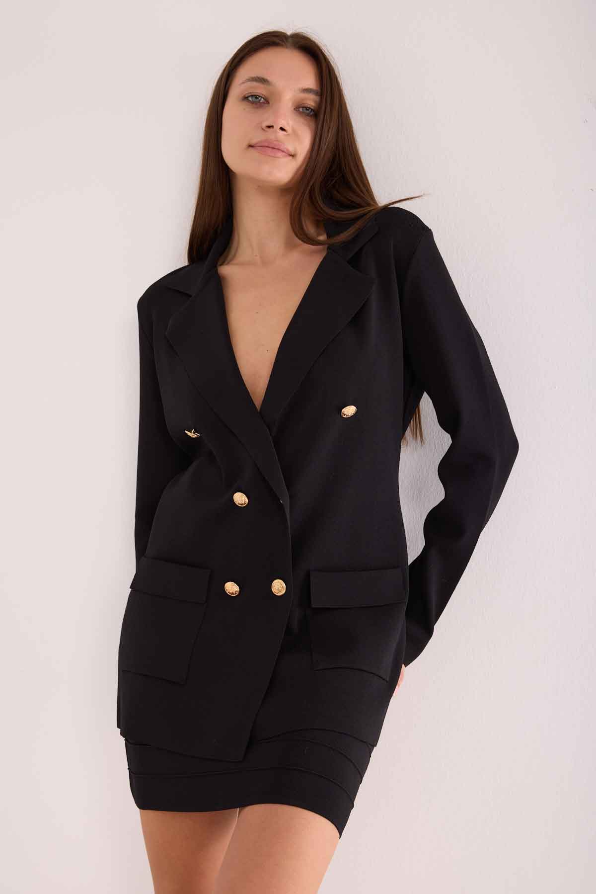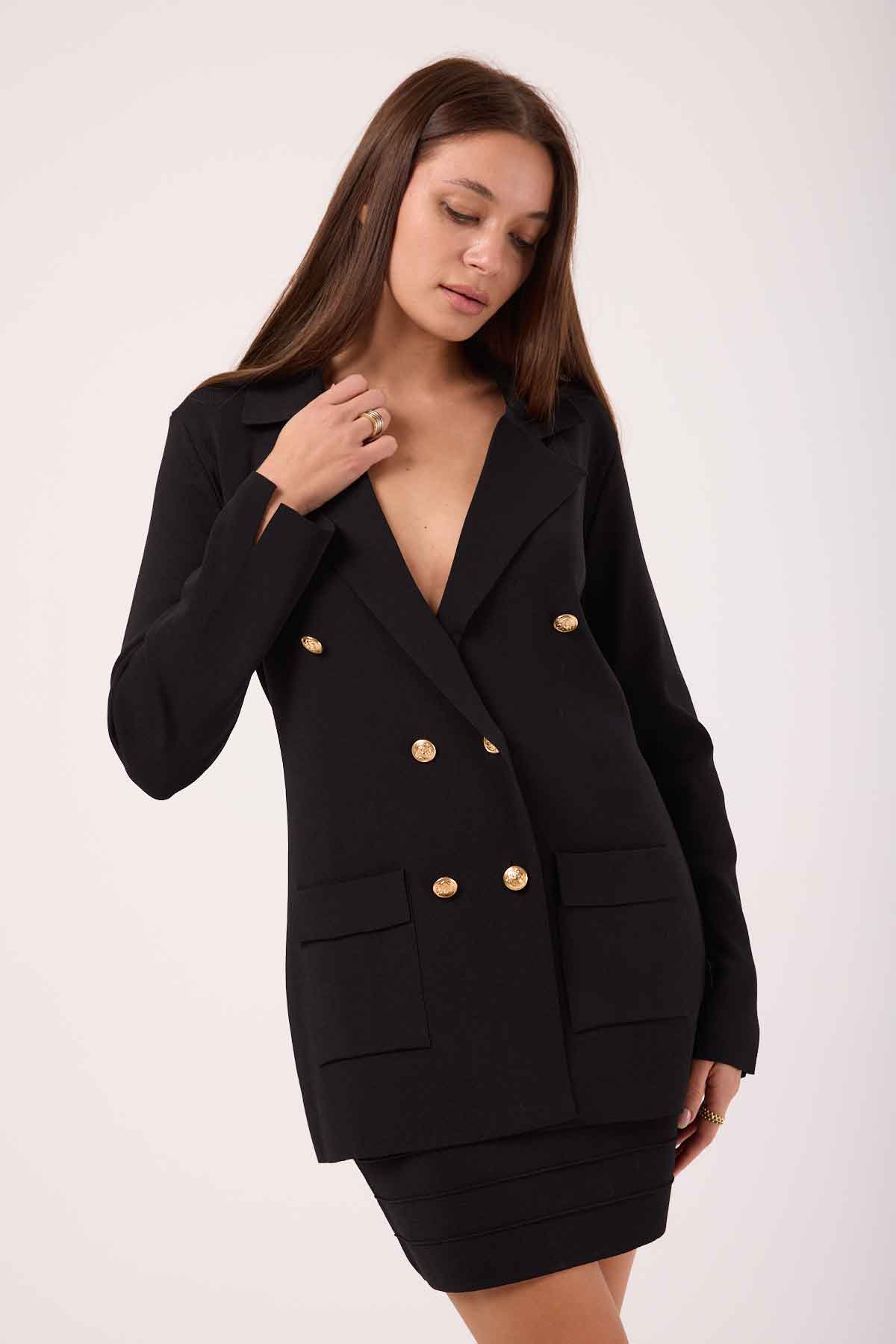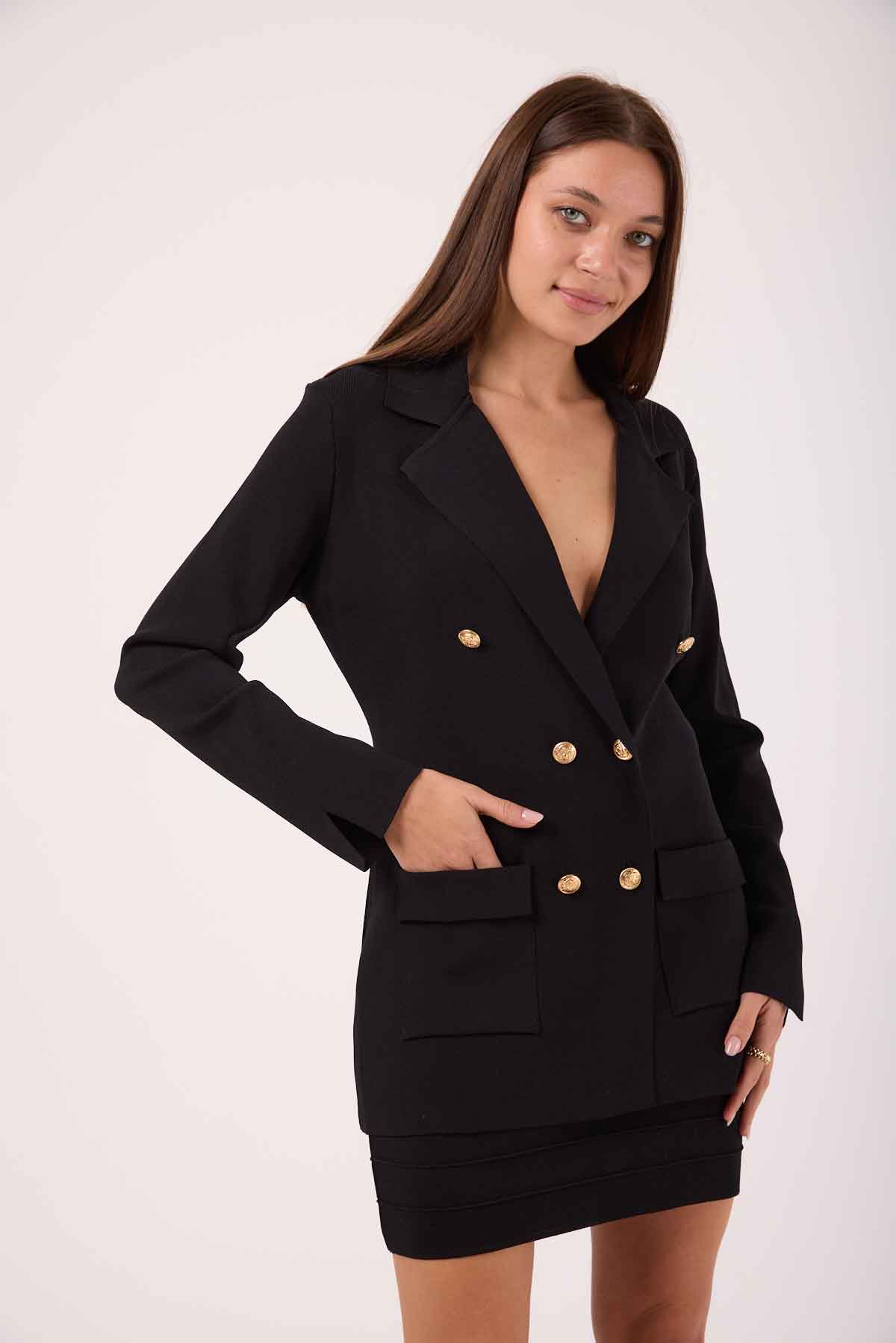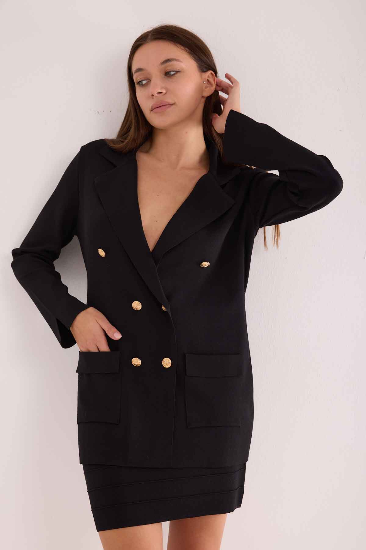 Bu Düğmeli Triko Blazer Ceket ile her ortamda zahmetsizce şık görünün.