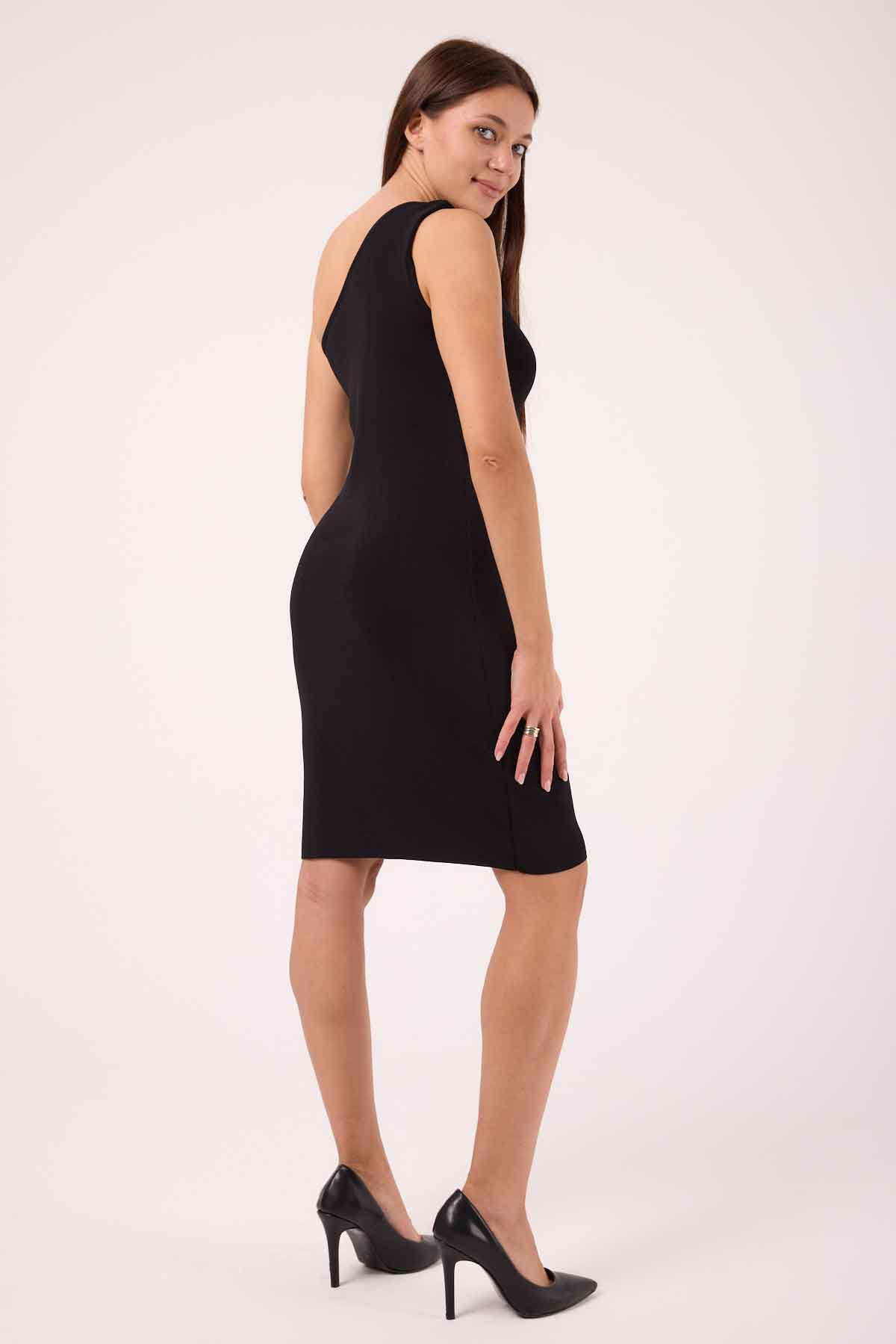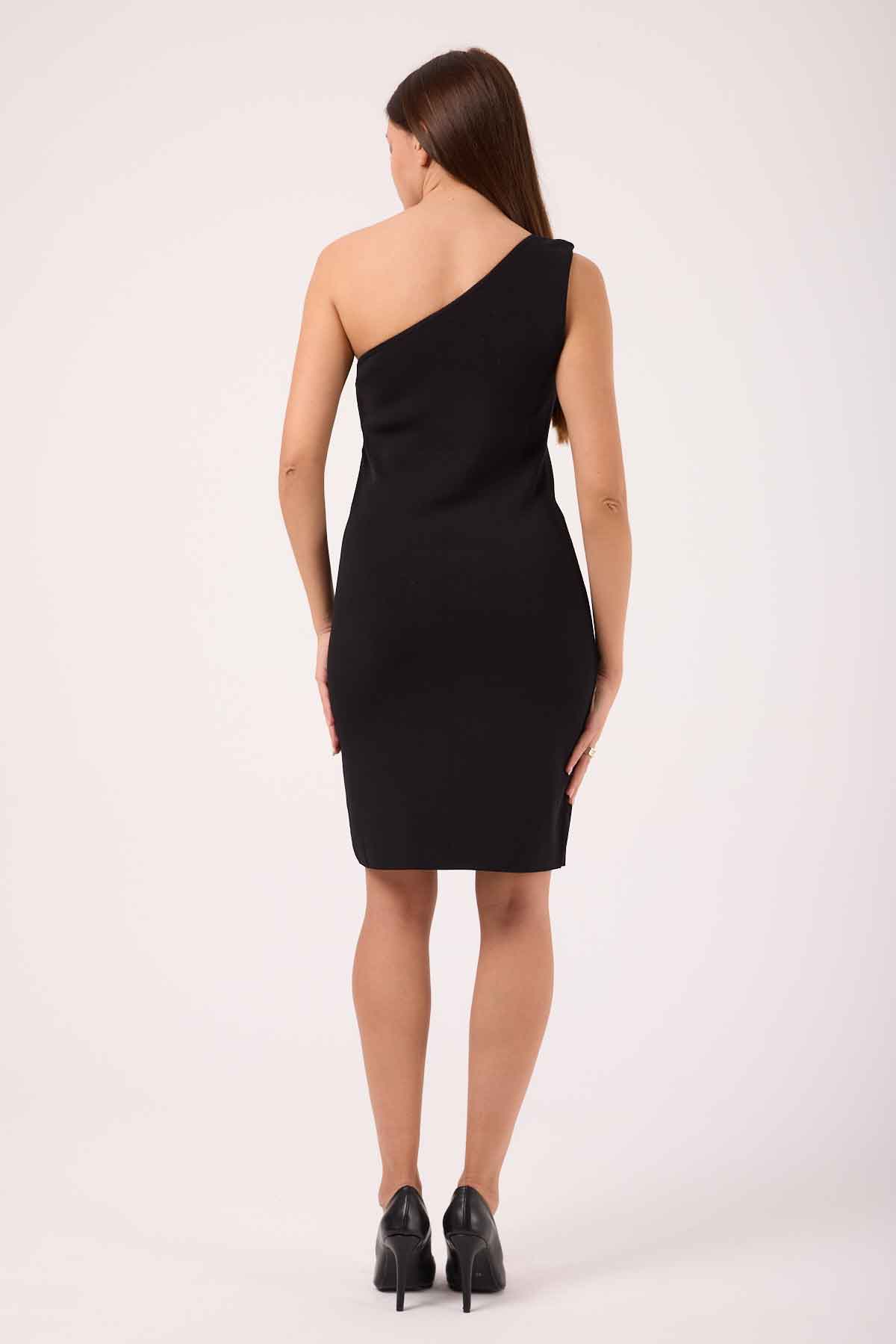 26519 - Triko Rayon İplik Tek Omuz Aksesuarlı Kısa Kokteyl Elbise