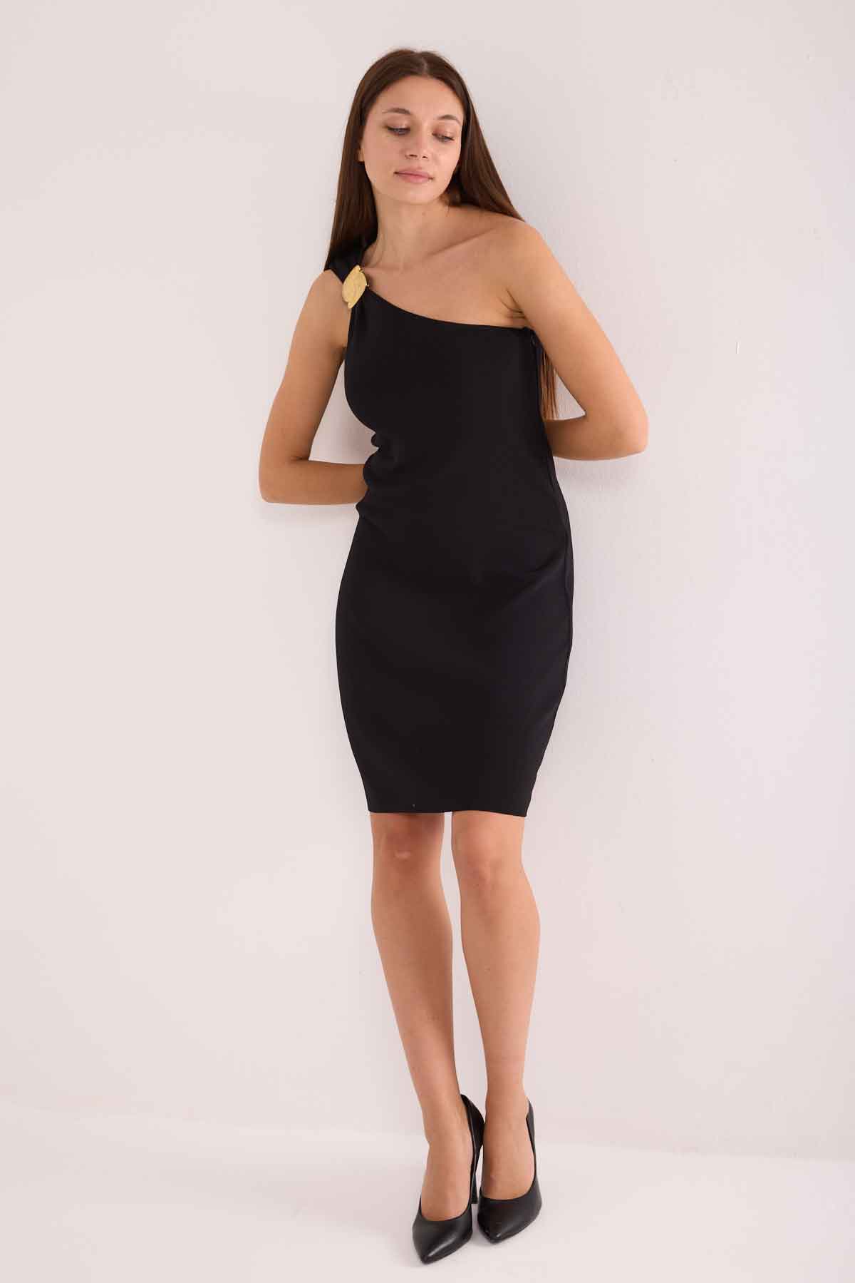 Bu Tek Omuz Aksesuarlı Kısa Elbise ile cesur ve sofistike stilinizi sergileyin.